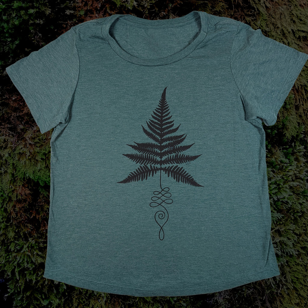Unalome Fern design is printed on a scoop neck tee, made from softest triblend fabric made with 50% recycled polyester, 25% organic ring-spun cotton, 25% modal, offers a relaxed silhouette that feels as effortless as it looks. This style features a curved bottom hem, a scoop neck, and a relaxed fit for everyday comfort.
